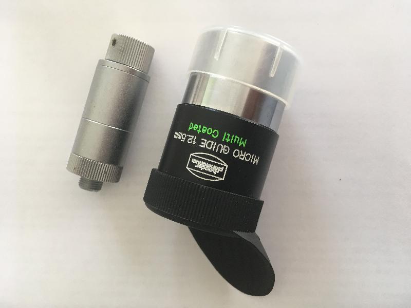 Oculaire micro guide or 12,5 mm de Baader Planetarium. Réglage dioptrique intégré. Dispositif d'éclairage amovible. (Piles neuves).
