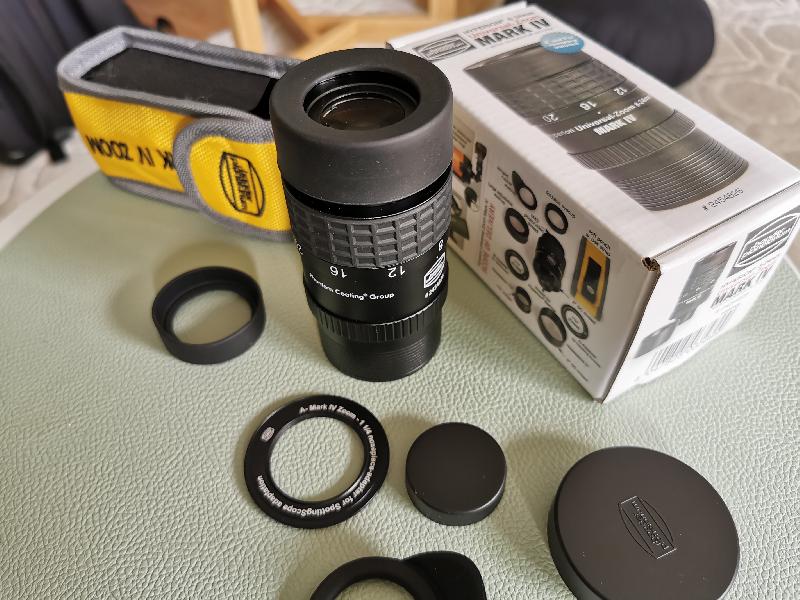 Excellent oculaire zoom multifonction : zoom 8-24, 1,25", 2", différentes bonnettes d'œil, pas de vis pour adaptation photo de l'image projeté.