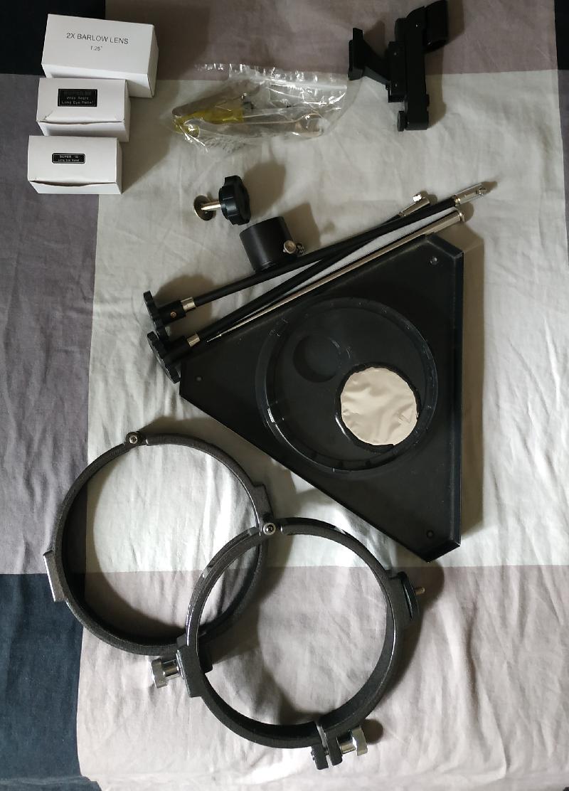 Avec je vends aussi un sac de transport contenant tube et trépied ainsi qu'un filtre solaire.