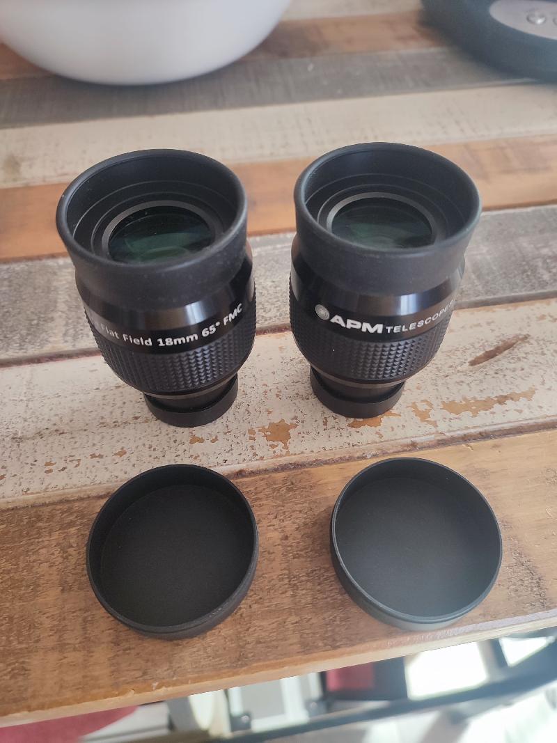 Je vends une paire d'oculaire 18mm APM ultra flat field 65° vendus d'origine avec ma paire de jumelles achetée en février 2026.