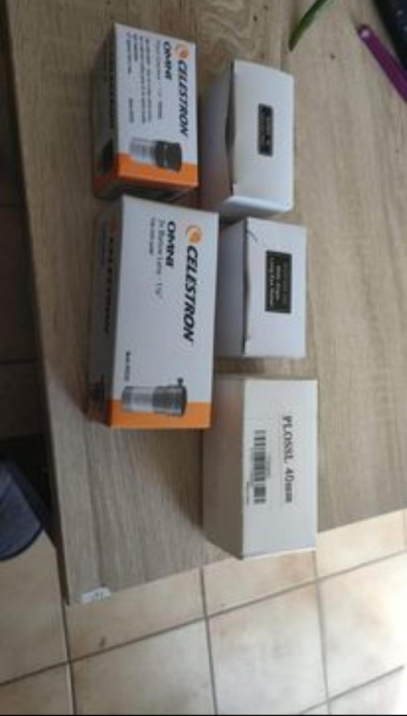 Vendu avec oculaire de base + 1 oculaire celestron omni 15mm + 1 Barlow X2 + 1 oculaire plossl 40 mm le tout 350 euros ferme