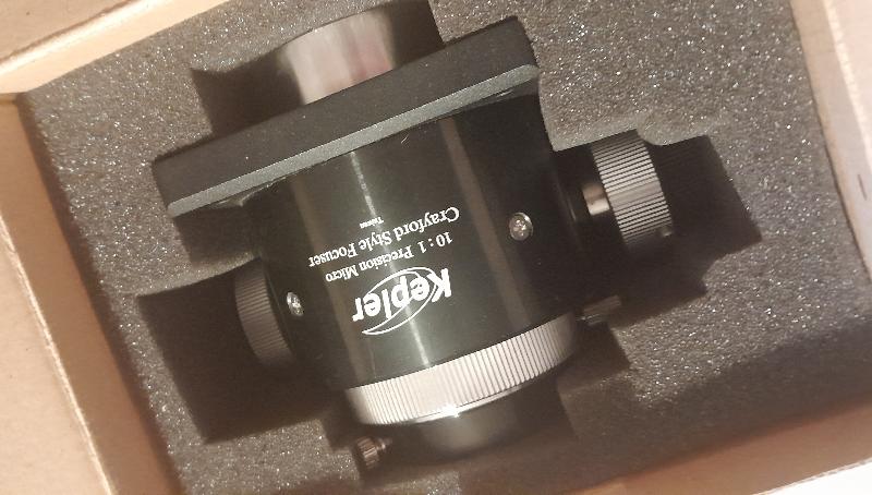 Un porte oculaire démultiplié Kepler 10:1 pour un Newton de 300 mm 2" (KE051), très peu utilisé, achat avril 2023 (Pierro Astro facture d'origine), vente car j'ai investi dans la motorisation du porte oculaire d'origine donc plus l'utilité. En parfait état avec bague réductrice 1"25. Voir photos.