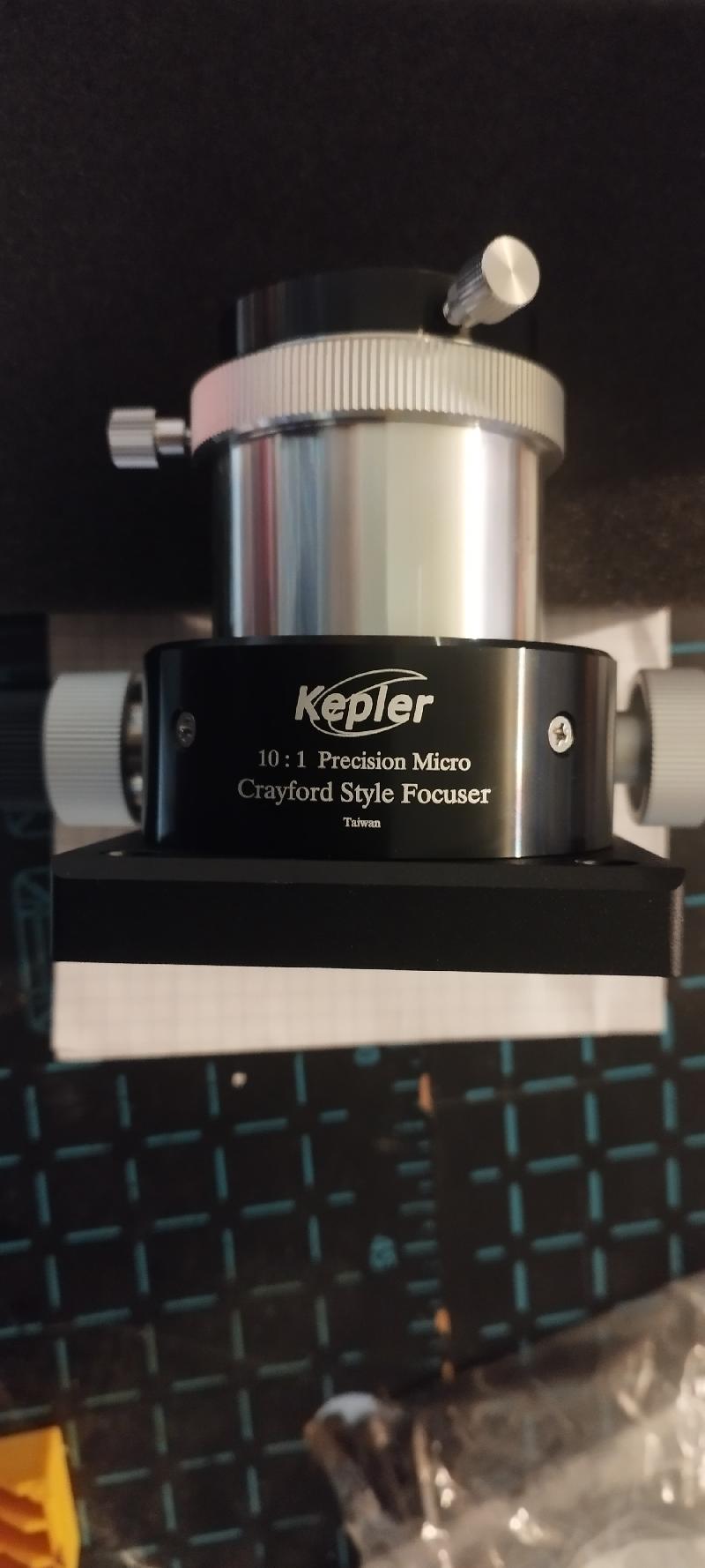 Je propose à la vente un porte-oculaire Kepler de type Crayford classique avec microfocuseur 1/10, destiné aux télescopes Newton de diamètre 200 à 250 mm.