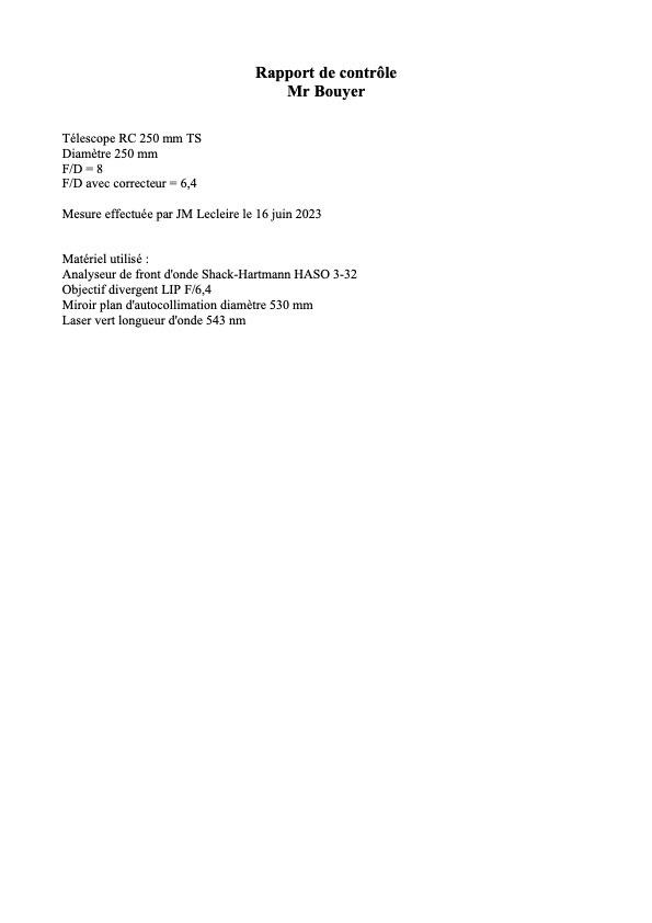 Lambda /4.5 PTV et Lambda/22 RMS, rapport de Strehl 0,897