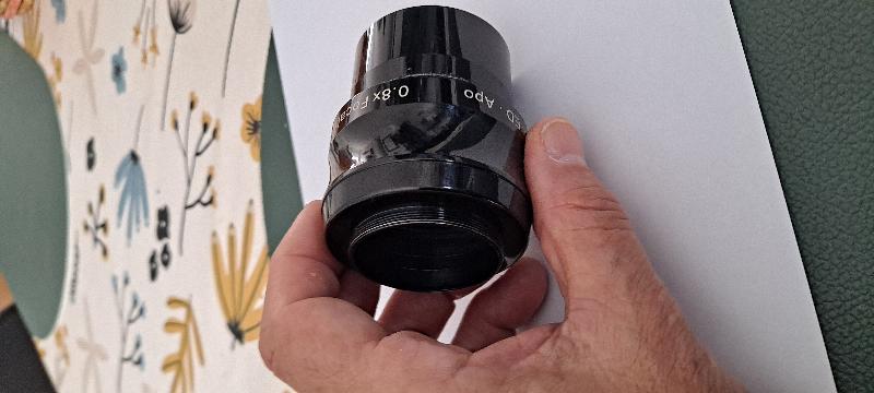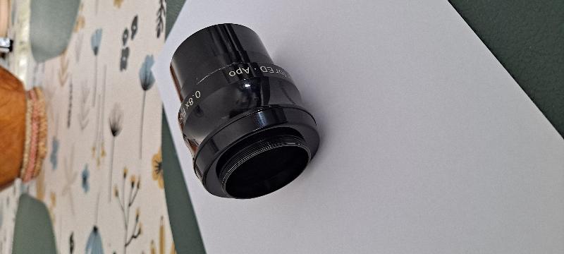Correcteur, réducteur, aplanisseur 0.8x, idéal pour les lunettes Apo de f5 a f8, optique impeccable sans rayures, juste trace de serrage sur la bague ne gênant en rien son utilisation. filetage a l'avant permettant de visser des filtres. Port compris.