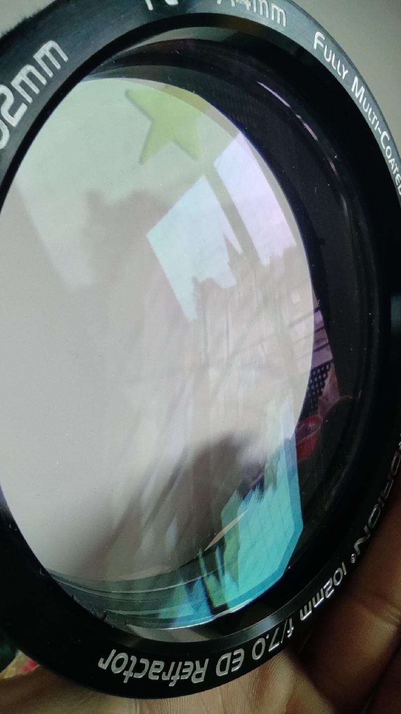 Les optiques (doublet apochromatique) sont en très bon état. L'aspect extérieur de la lunette comporte quelques légères marques d'utilisation mais en bon état également.
