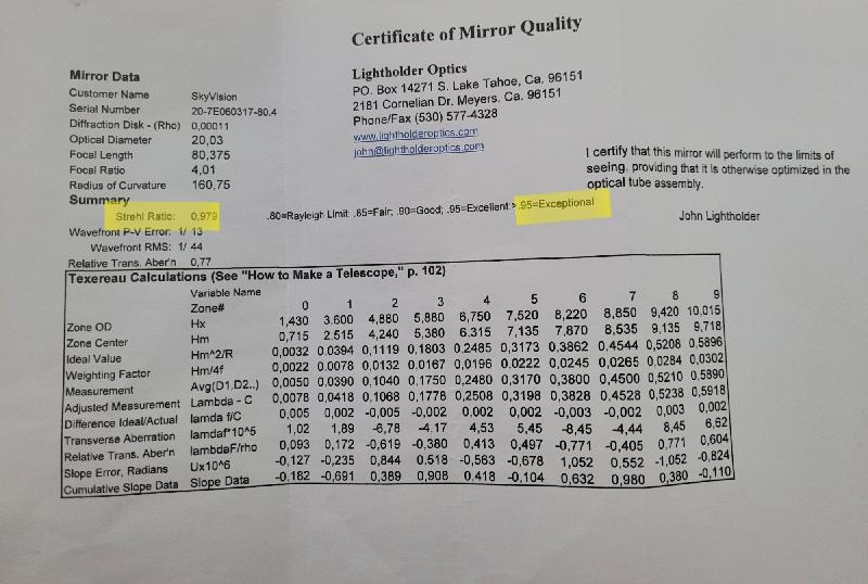 - Miroir Principal LightHolder : L'optique présente un Strehl ratio mesuré de 0,979 (rapport de test fourni). Ce niveau de performance garantit des images fines et contrastées.