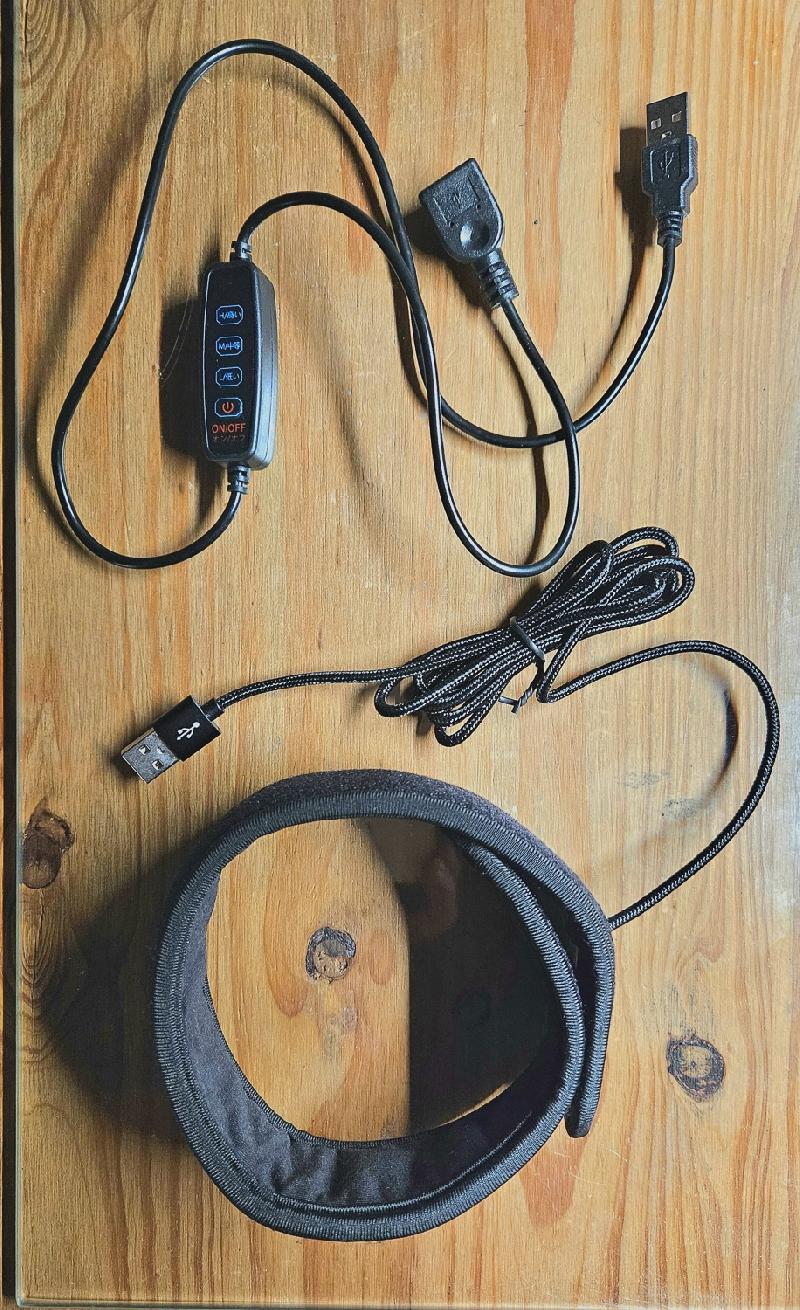 Résistance chauffante de 45 cm de long, pour tube ou lunette ou téléobjectif, avec un régulateur d'intensité; Prise USB