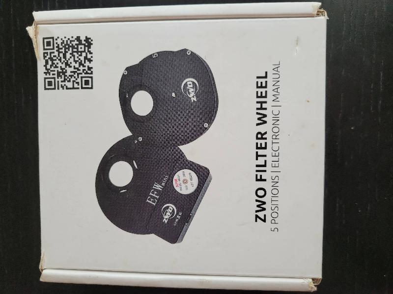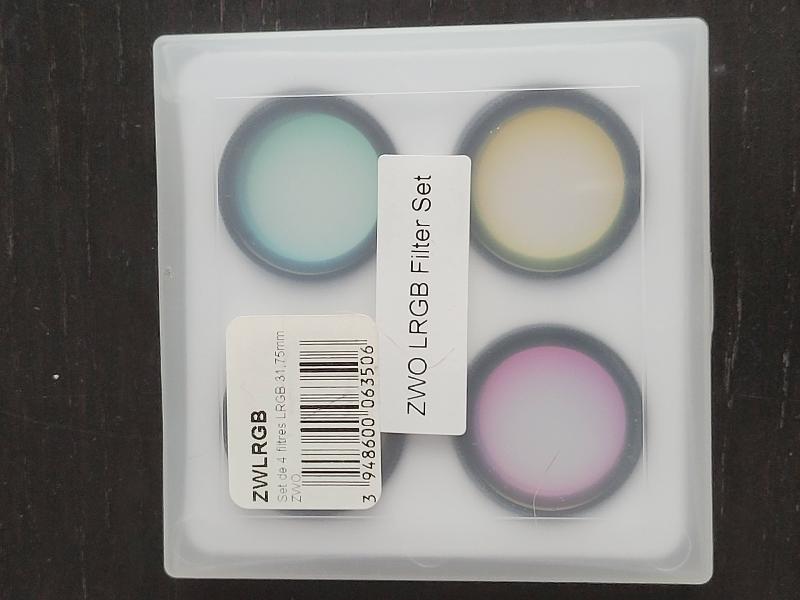 Je vends ma roue à filtre ZWO EFW mini 5 positions 31,75mm (filtres montés) ou 31mm (non montés) et son set de quatre filtres LRGB de chez ZWO également, montés en 31,75mm (1,25"), prix neuf environ 280€ (RAF) et 90€ (filtres), je les vends pour 185€, très bon état.