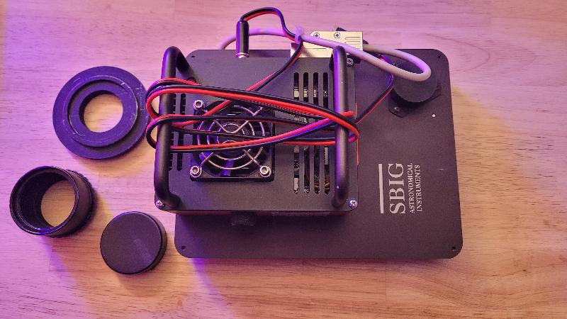 Camera CCD SBIG STF8300M (monochrome), montée d'origine avec roue à filtres FW8 (8 positions) - commande de la caméra et de la roue à filtres par le même câble.