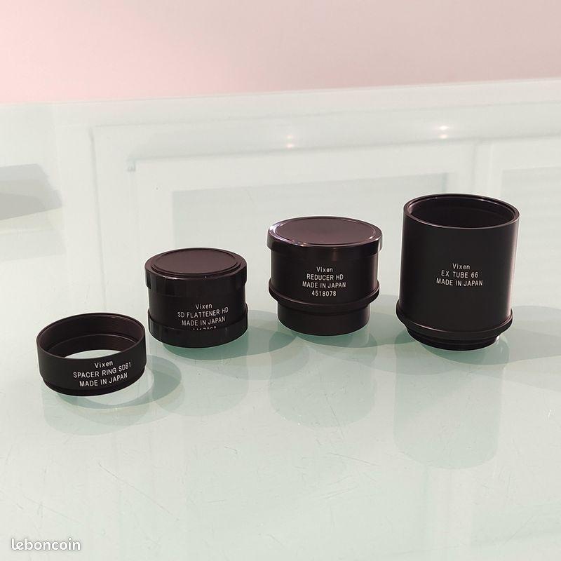 Je vends ce superbe ensemble réducteur + flattener+ bagues allonge de chez VIXEN Japan (leur "HD kit") qui est initialement conçu pour leurs lunettes apochromatiques à verre FPL-53 (de mémoire) !