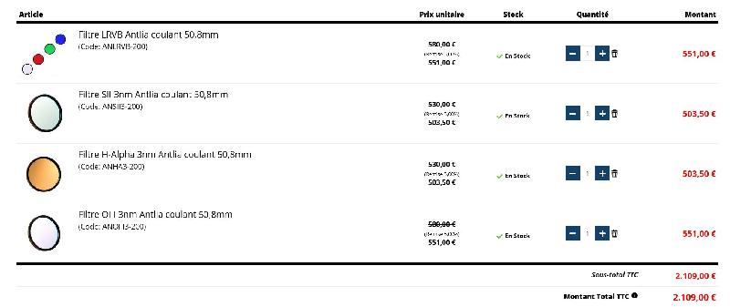 je vends un set complet, en 2 pouces montés, de filtes LRVB Pro et SHO Pro 3 nm de chez Antlia.