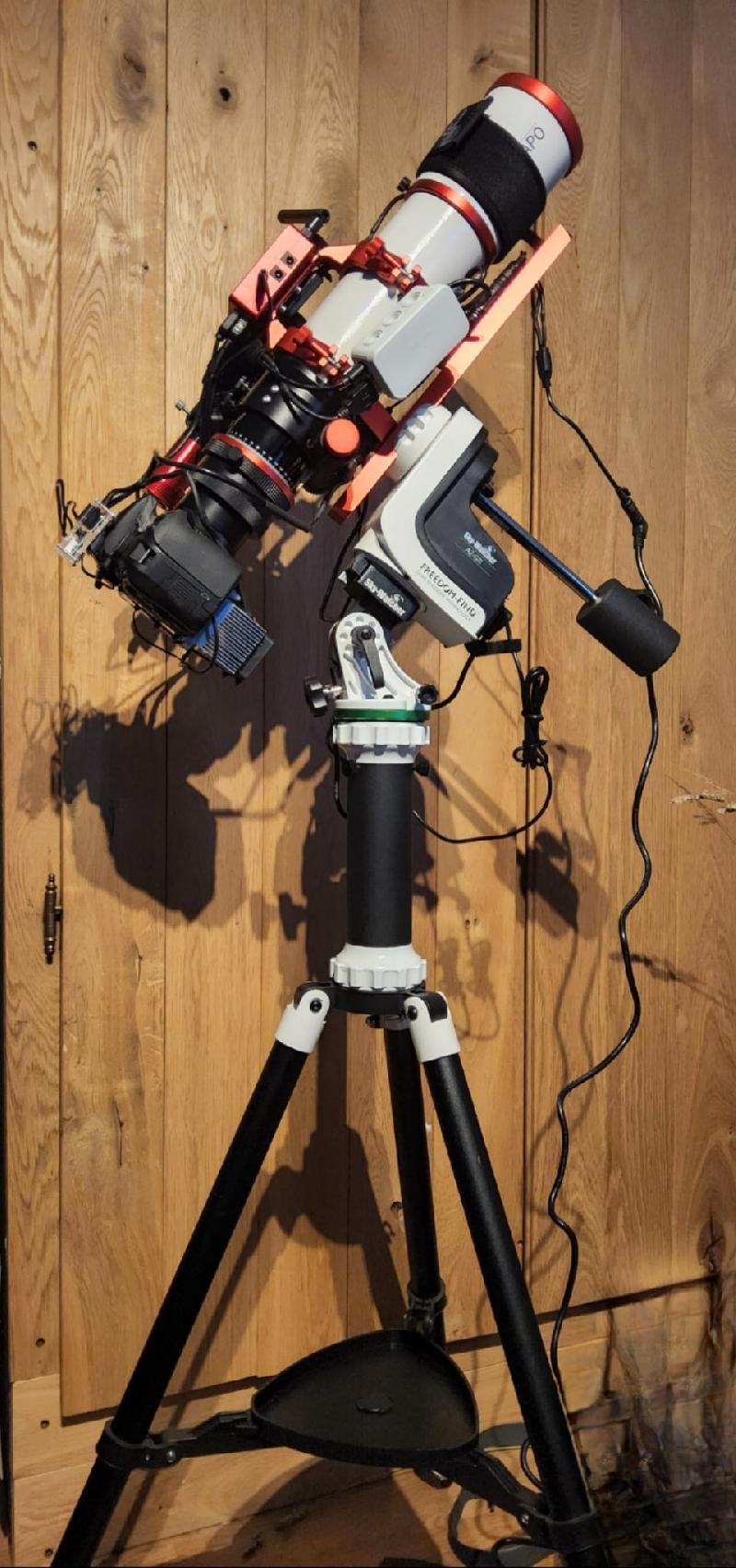 Ce setup est presque du Plug&Play. Le setup a été assemblé et recablé en optimisant chaque détail et en permettant de tout alimenter avec une seule prise. Les deux photos ont été prises l'été dernier avec ce setup. Tout peut être contrôlé par Wifi via l’application ASIAIR.