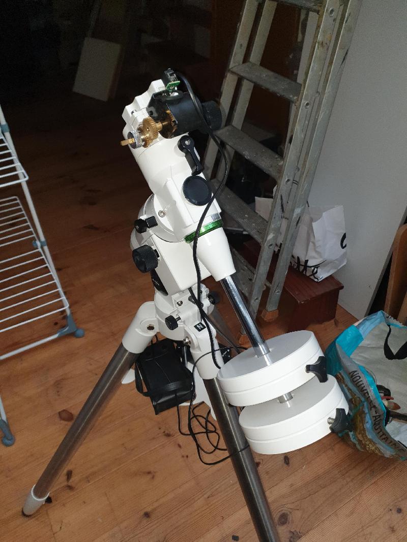 Monture Sky Watcher Eq-5 avec kit motorisation en très bon état, les piles ont peut servies et sont encore nickel.