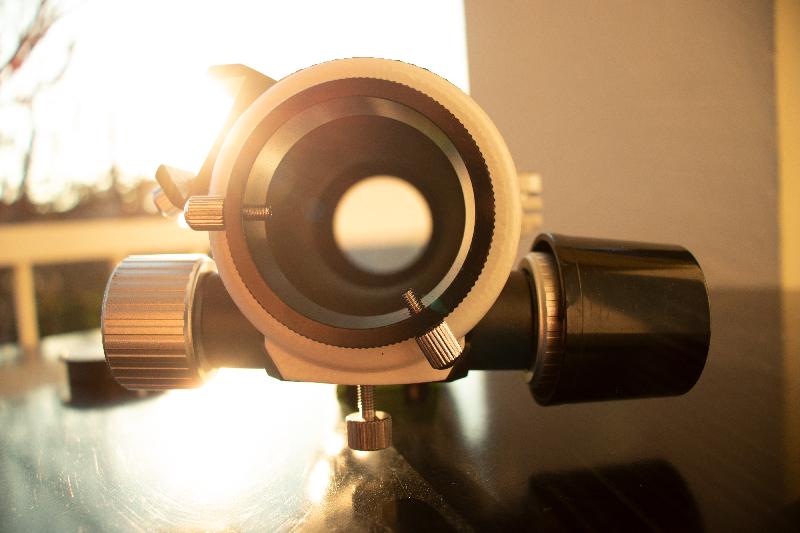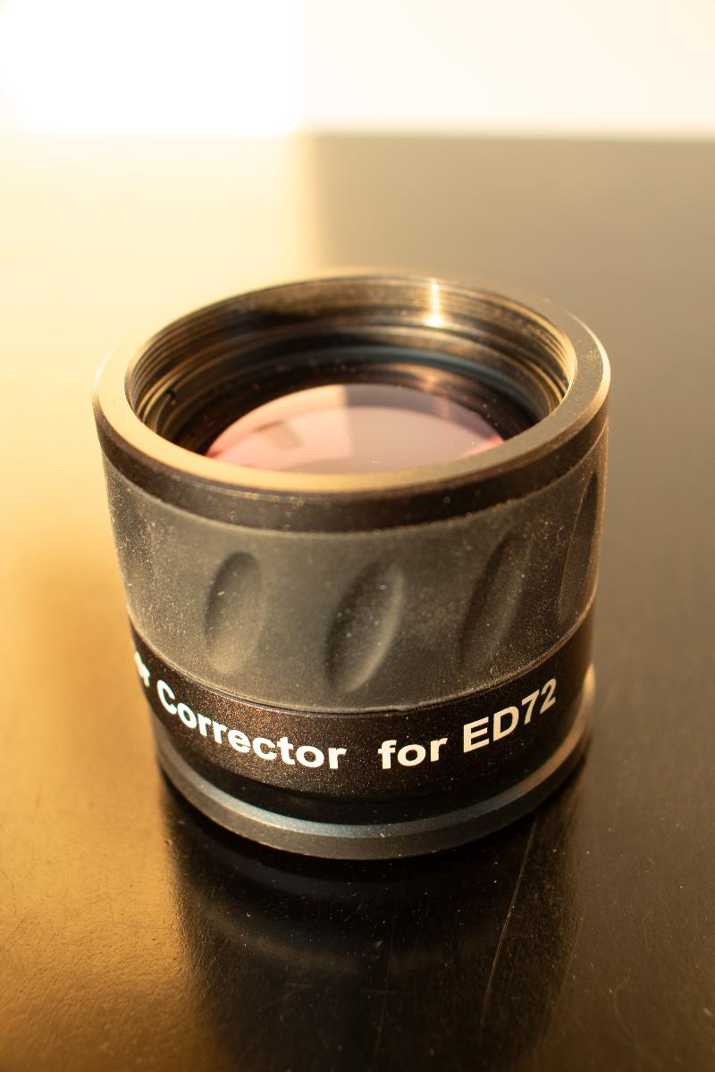 - Le correcteur/réducteur 0.85x Sky-Watcher spécifique, qui amène la focale à 357 mm et le rapport f/d à 4.9. La bague adaptatrice permettant de monter le correcteur sur la lunette