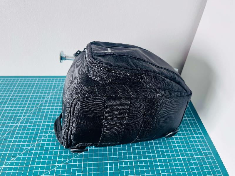 - une sacoche pour appareil photo qui peut accueillir tout ce beau monde (sauf la barre de contrepoids qui est un peu trop longue). Dimensions : 20x20x25cm, donc parfait pour emmener en voyage