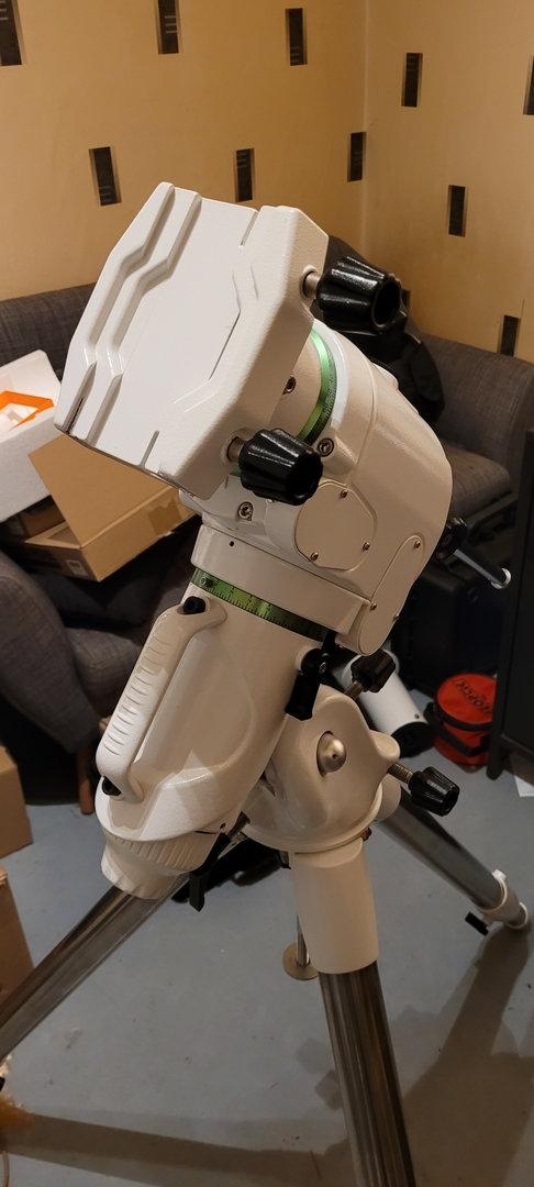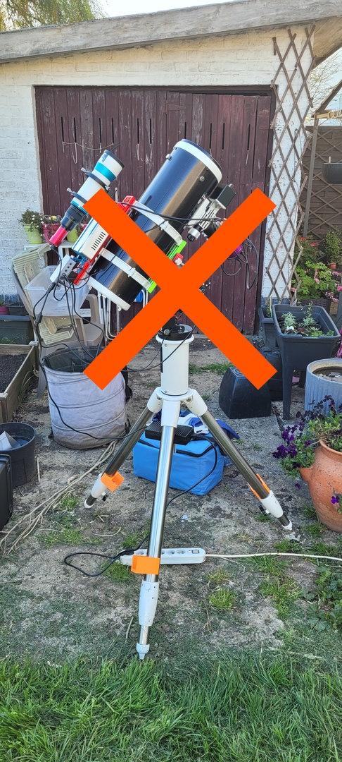 Je revends cette monture + trépied et ses accessoires pour cause de passage sur setup plus léger. Le matériel se trouve à Nivelles, en Belgique. La photo avec la croix est simplement pour vous montrer le trépied, le matériel au dessus n'est pas à vendre. Par contre, je peux aussi laisser les supports 3D pour tenir les blocs d'alimentation (même s'ils ne tiennent plus aussi fort qu'à leur début).