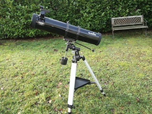 Skywatcher 130/900 sur monture eq-2 acheté il y a 1 an et demi (facture à l'appui). Vendu avec les deux oculaires d'origine (10 et 25mm) et le chercheur point rouge. Le tout est en parfait état, il y a seulement un petit d'éclat de peinture sur l'extérieur du tube (voir photo). Les miroirs ont été nettoyés et j'ai placé un oeillet au centre pour faciliter la collimation. A venir chercher sur place ou dans les environs. Photos supplémentaires sur demande