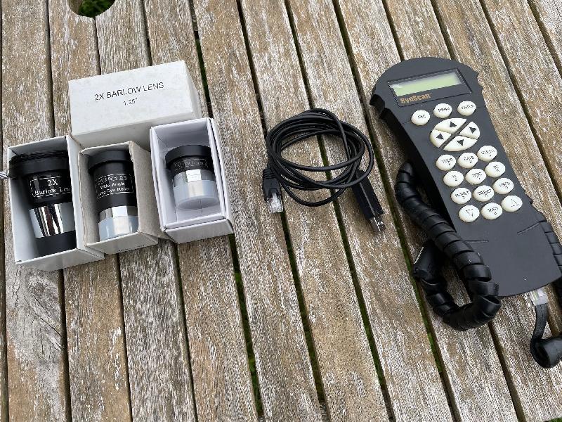 Monture n-eq5 goto avec raquette synscan, contre poids et viseur polaire et je mets un câble eqmod pour connecter la monture à un ordinateur ou un asiair (vendu toujours séparément)