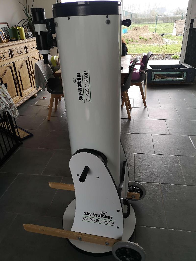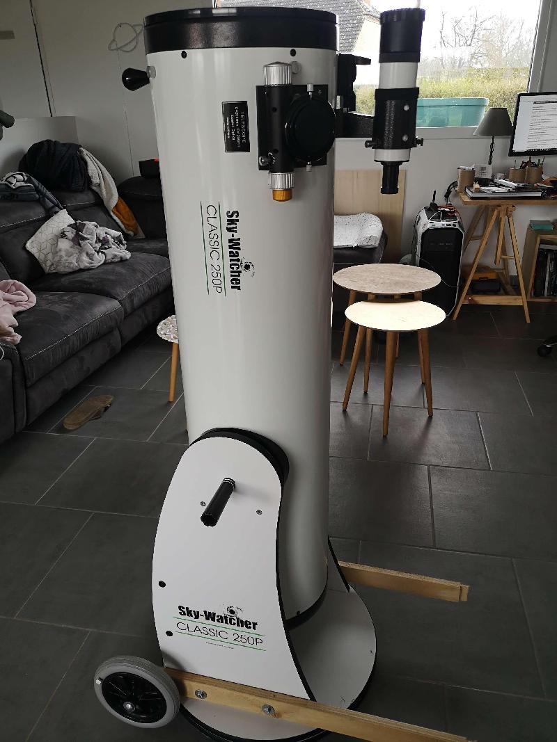 Télescope Skywatcher 254/1200, rapport f/D 4.72, miroir impeccable, vend avec un porte oculaire Crayford Hybrid 2" pour réflecteur Newton, deux vitesses (démultiplié a 1/11) de la marque omegon et un oculaire de 10 mm. Je laisse le viseur point rouge pour une plus grande facilité de visé.