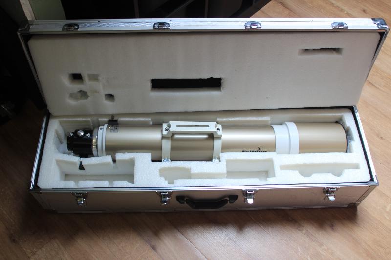 Skywatcher ED 120mm/ F900mm f7.5 avec double porte-oculaire rotatif de TS. Repose sur une large assiette Losmandy. Ce télescope n'a pas besoin d'être présenté (voir avis). Livré avec étui de transport d'origine comme indiqué sur les photos, pas de viseur inclus. Livré également avec un oculaire de TS Optics 6 mm et un oculaire d'Omegon Swa 70deg 15 mm.