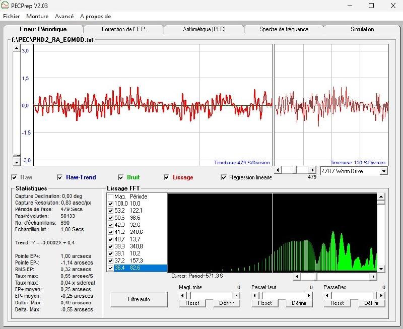 La monture ne présente quasiment pas de traces d’usure, sauf les contre-poids, elle est bien entendu parfaitement fonctionnelle. Je peux fournir une vidéo de la monture en fonctionnement et plusieurs fichiers pour l'analyse poussée de l'erreur périodique (aperçus ci-dessous). J’ai gardé la mousse pour le transport.