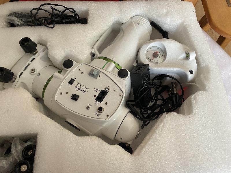 complète avec trépieds, poids, raquette, câble eqmod, sac de transport, alim 12v 5 amp,