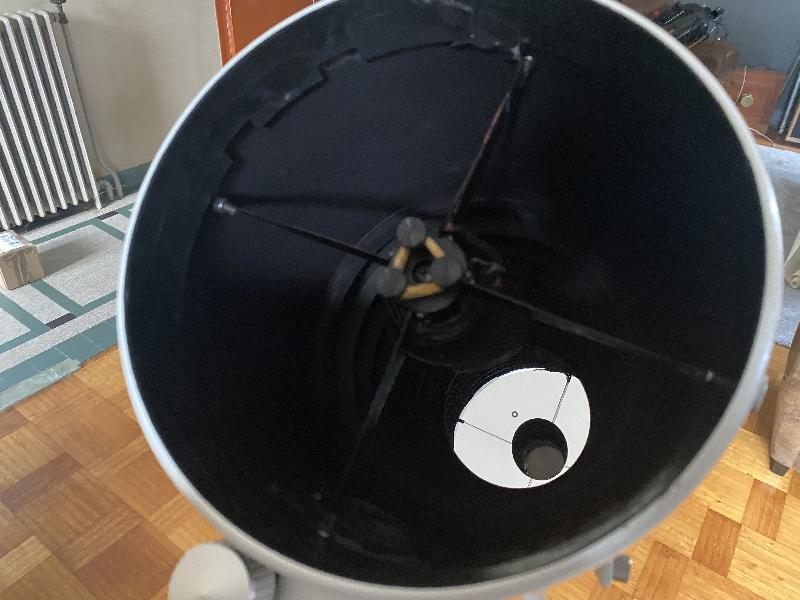 Le secondaire est bien centré. Et la collimation se fait en quelques minutes . Je finissais ensuite sur étoile, train optique monté.