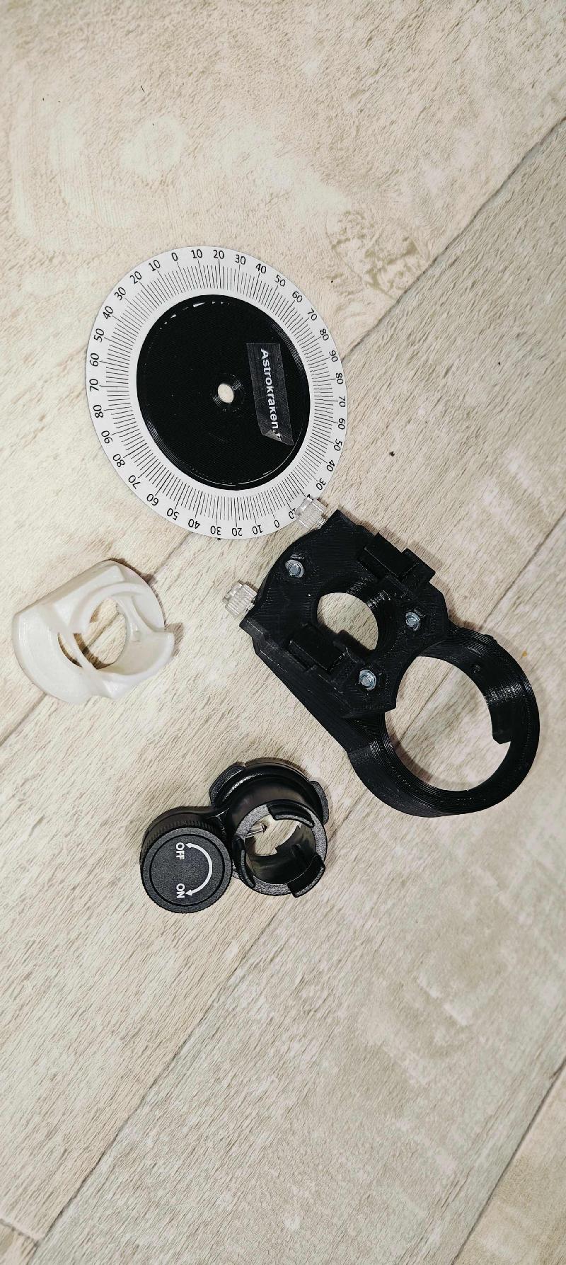 3 pièces imprimées en 3D mais dont je ne connais pas l'usage ainsi qu'un cercle gradué.