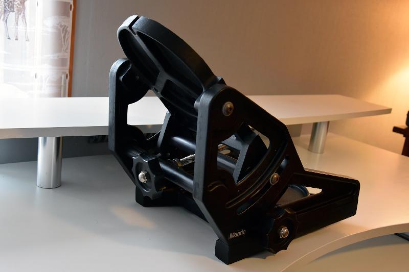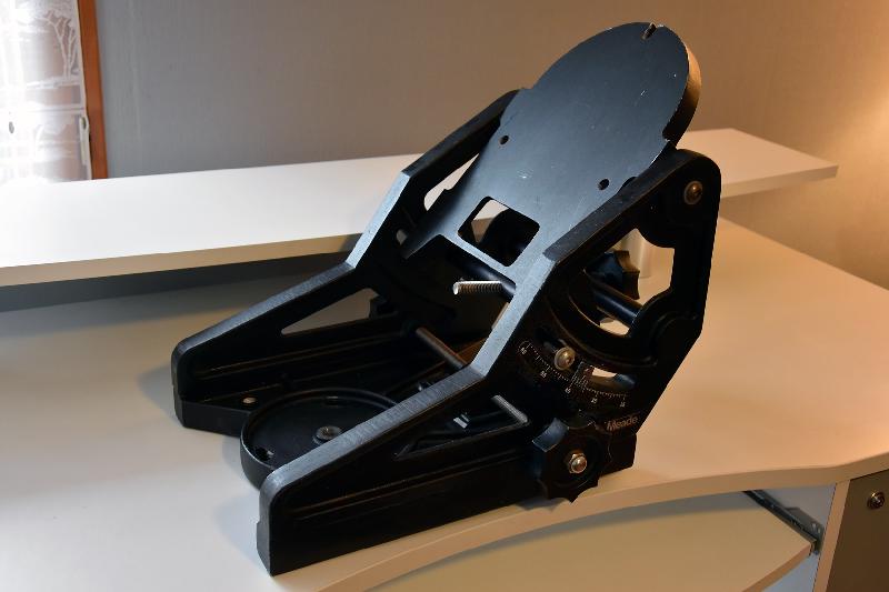 La table équatoriale est prévue pour les télescope Meade LX200 de 8 à 14 pouces (200 à 355mm) ; elle peut recevoir les Celestron à fourche avec quelques perçages simples sur la partie avant.