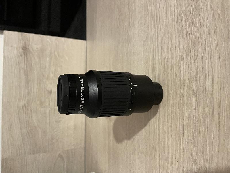 Oculaire Super zoom APM 15,4-7 mm, grand champ constant 67° sur toutes les focales, parfait état, complet avec boîte et bouchons. Photos supplémentaires sur demande avec votre pseudo à côté , n’hésitez pas.
