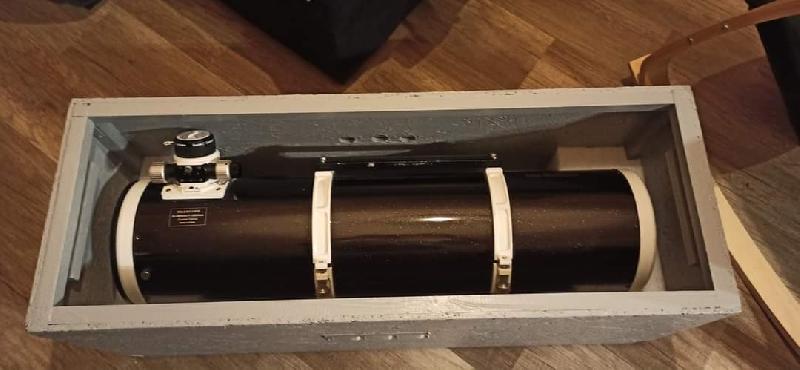 J'ai également une caisse en bois, sur mesure et de qualité, avec poignée, aération et mousse pour caler le tube.