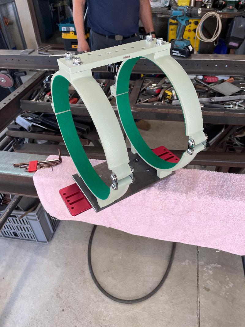 . Fabrication d'une plaque en métal peinte en noir pour fixer une queue d'aronde Losmandy Primalucelab fournie avec le télescope.