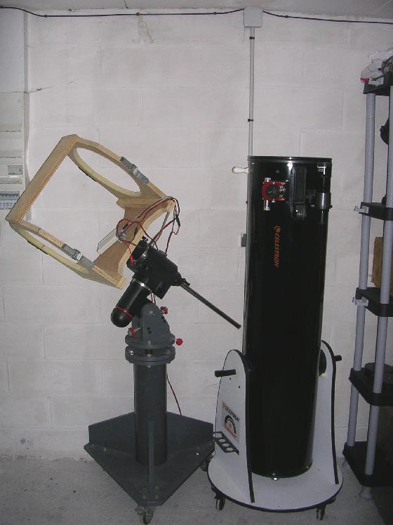 - monture EQ6 avec roulements et graisses changés + pied colonne 40kg en PVC HP 25mm et lesté au sable + motorisée ASTROMECCANICA transmission par courroie + raquette de commande + alimentation séparée + logiciel + 4 poids 5kg sur tige contrepoids renforcée + colliers bois pour le tube 350mm : convient en visuel ou photo lunaire/planétaire mais pas assez stable pour le stellaire avec un tel tube. Prix 600€