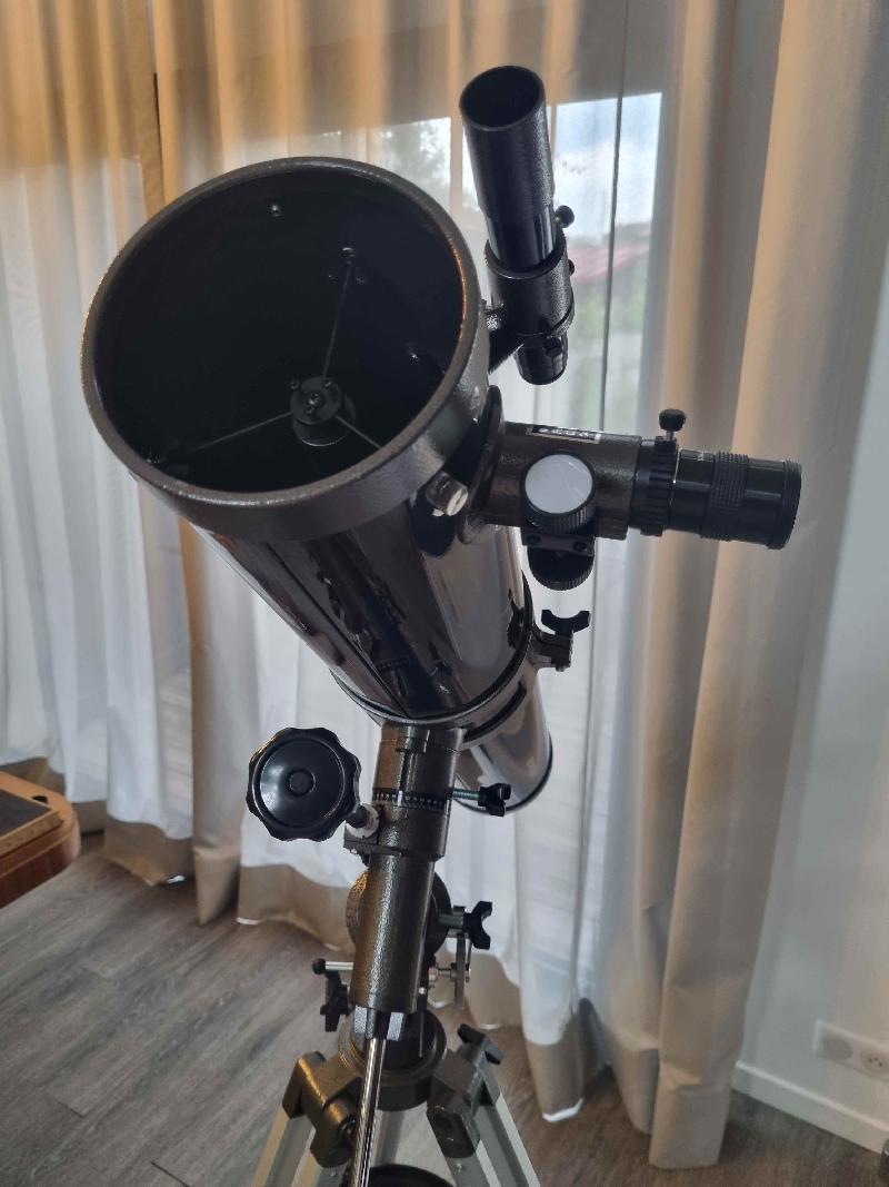 Construction optique : type Newton. Diamètre du miroir en 114mm. Focale en 900mm. Monture : Azimutale. Trépied Aluminium inclus. Hauteur max en 135cm. Oculaire Plössl 25mm. Coulant 31,75mm. Chercheur 6x30mm.