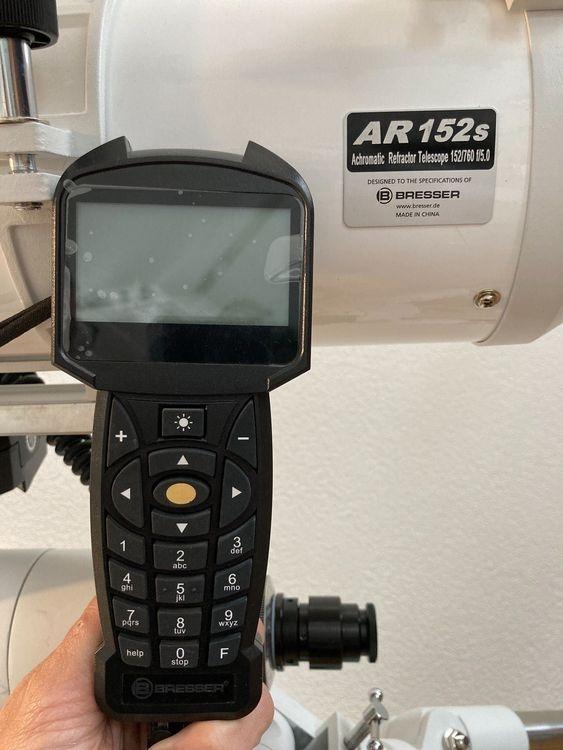Monté sur une monture Bresser Equatorial EXOS 2 GOTO avec trépied en acier inoxydable et commande manuelle Startracker. Comprend une interface d'autoguidage compatible ST-4.
