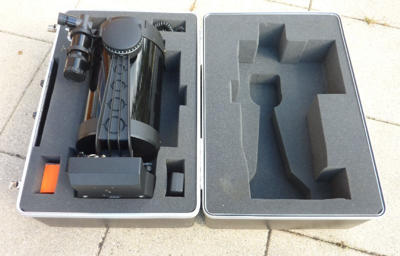 Gros atout supplémentaire : Le télescope et ses équipements bénéficient de leur valise de transport Célestron d’origine, état neuf, intérieur avec compartiments en mousse, et qui permet le transport facile et en toute sécurité, sans démontage du télescope avec ses chercheurs (gain de temps pour la MES), et maintien l’appareil à l’abri des chocs, poussière et humidité