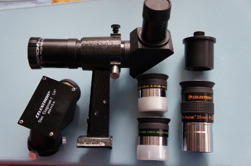 - 3 oculaires: 25mm, 9.5mm, 6.4mm (grossissement 50, 135, 200 fois