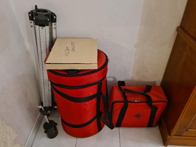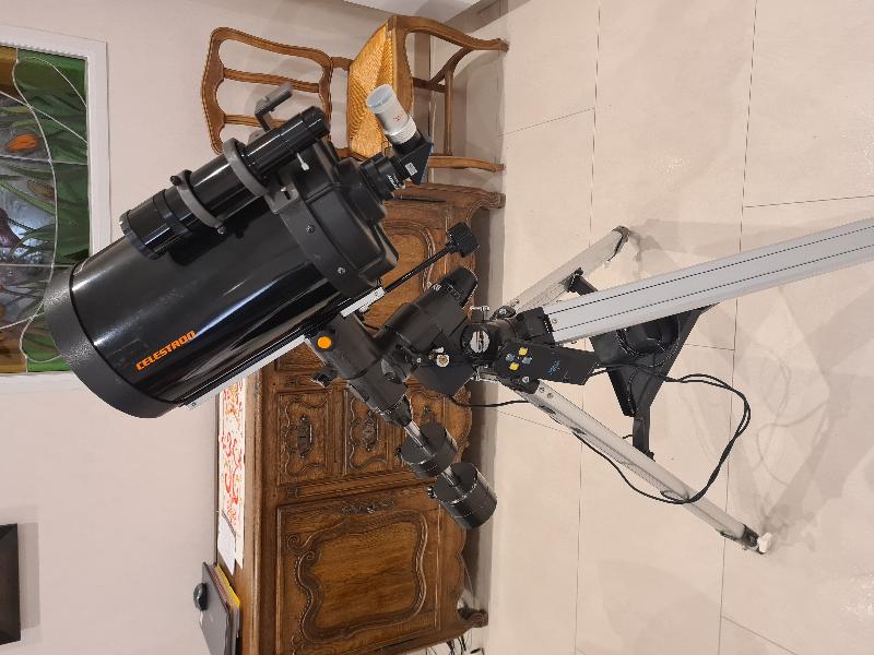 Suite à l'achat d'un diamétre supérieur, je vends un télescope Schmidt- Cassegrain C8 de 203mm, focale 2030 sur monture GP motorisé avec chercheur 9X50, renvoi coudé, oculaires de 26mm et 7,5mm, filtre solaire et sacs de transport (1 pour le tube et 1 pour la monture)