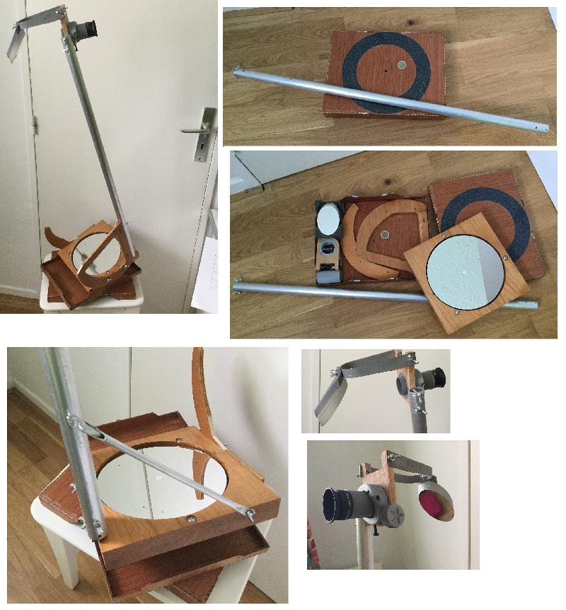 Vends télescope démontable (pour les voyages en avion entre autres) de diamètre 200mm et longueur focale 1000mm. Les parties bois sont en cerisier et contreplaqué.