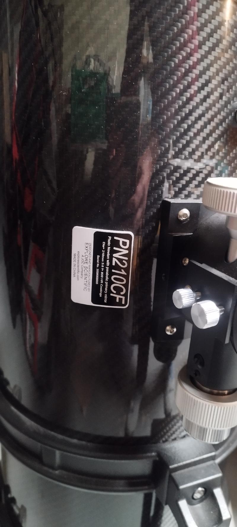 Je propose à la vente un télescope Explore Scientific PN210/800, tube Newton carbone de 210 mm ouvert à f/3.8, instrument haut de gamme particulièrement adapté à l’astrophotographie grand champ et à l’observation du ciel profond.