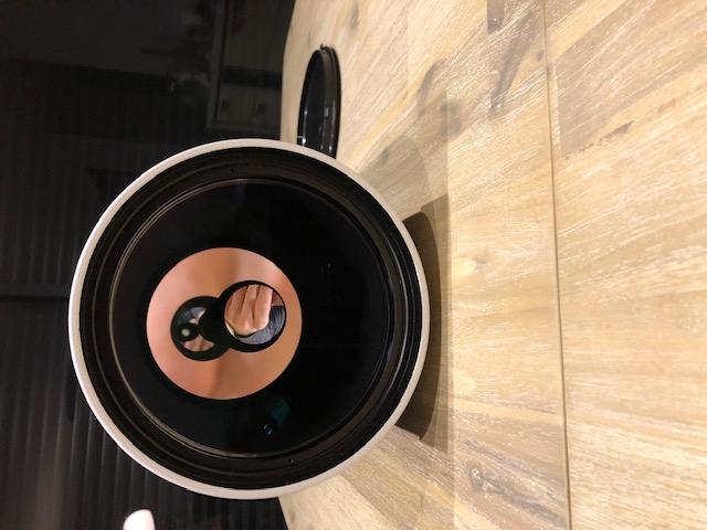 Acheté le 15/05/2018 à La Clef des étoiles, état neuf, aucune rayure, aucune marque sauf évidemment sur la queue d'aronde lors des quelques montages sur la monture. Utilisé essentiellement l'été pour de l'astrophoto planétaire, son domaine de prédilection. Toujours stocké à l'intérieur de la maison