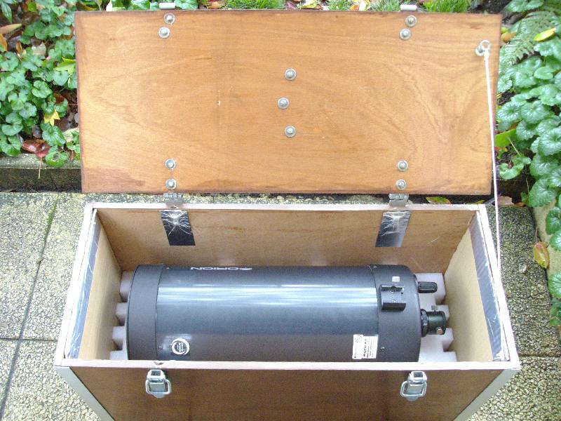 Cause rationalisation de mon setup, je vends mon tube Maksutov-Cassegrain (type Gregory-Maksutov) de marque Orion, d'un diamètre de 180 mm d'ouverture utile et de 2700 mm de focale (f/d 15), porte oculaires femelle de 31,75 mm, magnitude limite 13,1, pouvoir séparateur : 0,64, pouvoir collecteur de lumière : 660, poids : 7,3 Kg. Il est en excellent état tant le tube que l'optique (toujours stocké dans sa mallette et dans un garage), utilisé avec le plus grand soin une vingtaine de fois pour du planétaire où il excelle particulièrement, ainsi que pour des amas globulaires, nébuleuses planétaires, étoiles doubles et bien sûr pour des observations de la surface lunaire très détaillées. Je le vends avec les accessoires suivants :