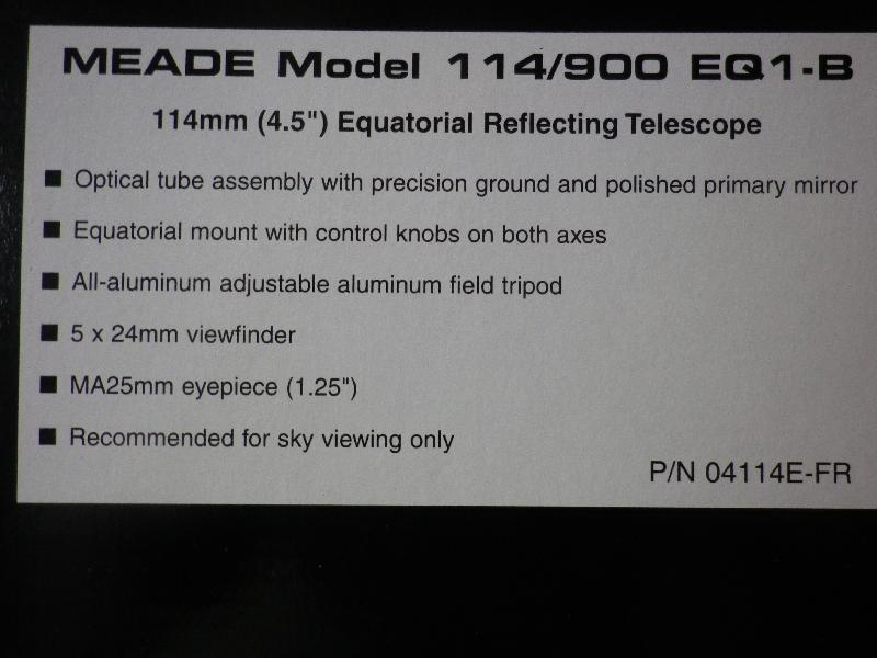Téléscope MEADE 114/900, monture équatoriale. Avec avec oculaire 1,25".