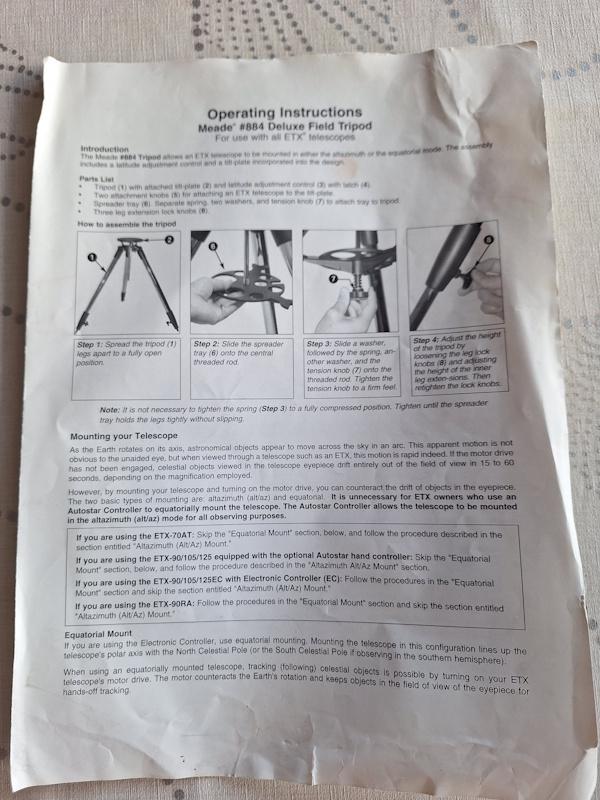 - Mode d'emploi papier du télescope, trépied et autostar