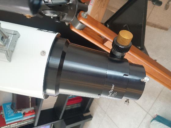 Des toutes petites poussières sont sur la lame, j’y ai mis des vis bob’s knobs pour mieux régler le miroir secondaire . Une petite collimation sera nécessaire après le voyage !