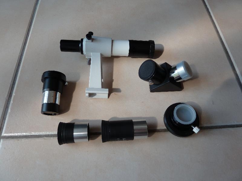 - oculaires Plossl de focale 25mm et 10mm coulant 1,25". Permettent un grossissement de 80 et 200 fois