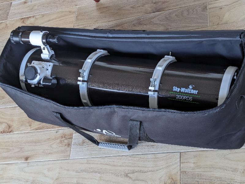 Suite à l'évolution de mon setup, je vends un Newton 200/1000 PDS Sky-Watcher équipé d’un masque de chanfrein, acheté en juin 2022 chez Pierro Astro.