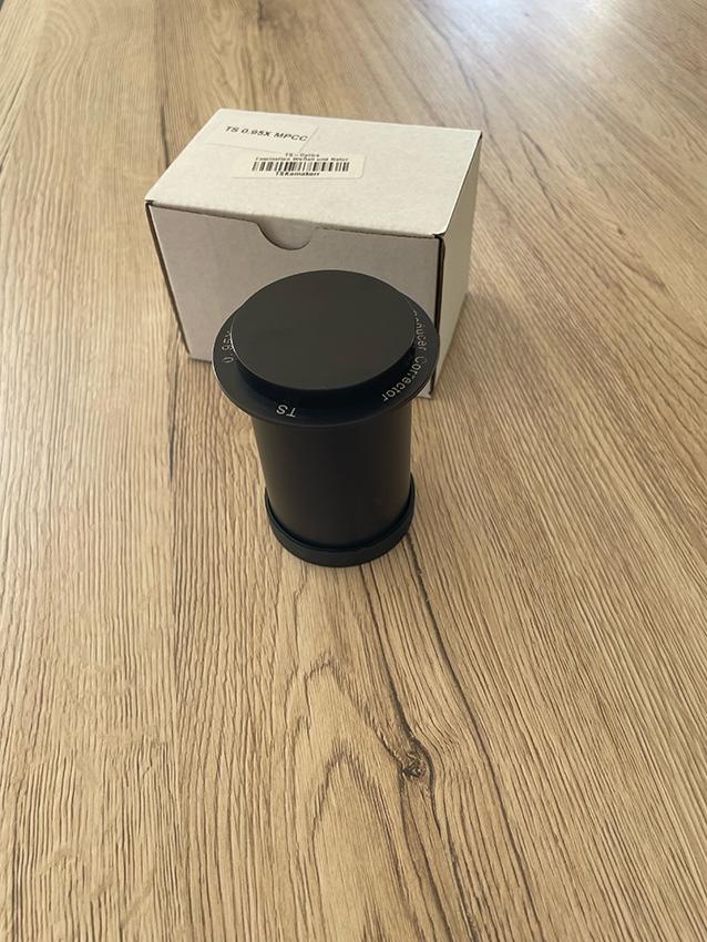 Le lot contient le focuser electronique Sesto Senso Primalucelab permettant de faire la mise au point automatiquement ainsi que le correcteur de coma TS Maxfield X0.95 réduisant la focale à 1140mm. Les lentilles du correcteur n’ont aune rayure, juste quelques rayures sur le coulant extérieur due au serrage du porte oculaire ne gênant en rien son fonctionnement.