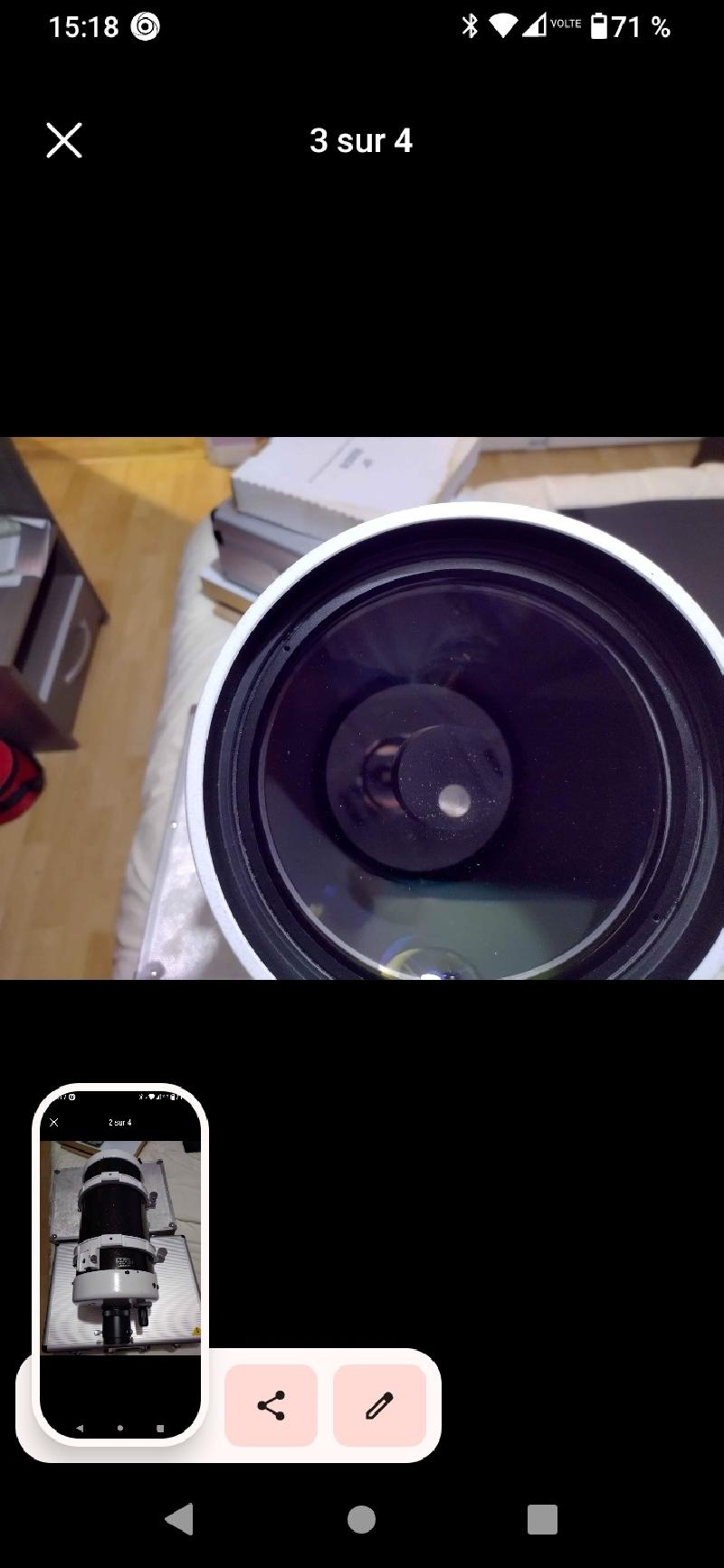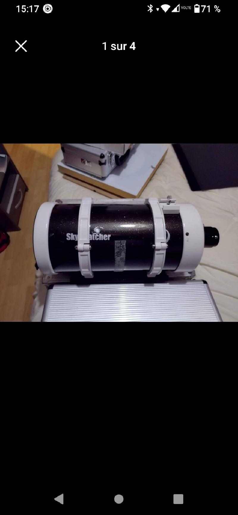 Télescope Sky-Watcher 150 /1800 avec queue d'aronde mâle + oculaire 28 mm + chercheur 9X50 + pare-buee valeur neuf 825€ possibilité de rajouter un filtre solaire pleine ouverture en verre 100€ de plus valeur 200€ pas d'envoi a récupéré sur place